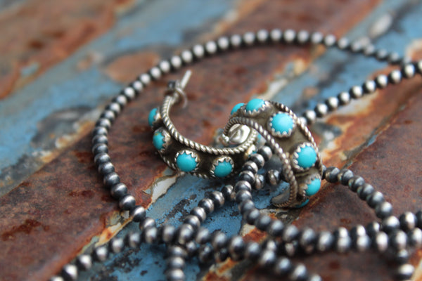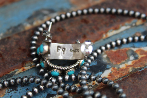 Half hoops w/ 5 turquoise stones sterling stamped by artist FY