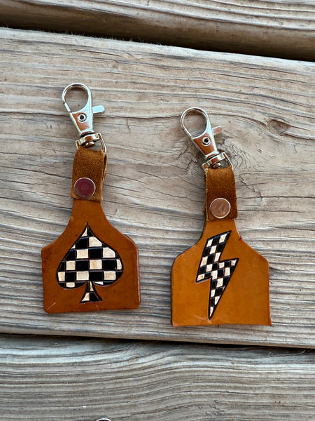 Hand tooled and painted genuine leather keychains! These can be customized if you would like just leave a message in the NOTE section stating the initial and color you want!