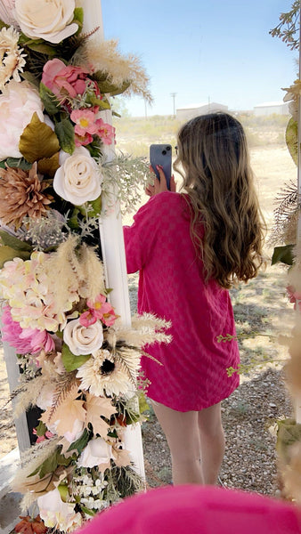 This button up shirt features a unique checkered terry cloth that lends a classic look. Its lapel collar textured short sleeve design is both elegant and modest, and its relaxed fit style is suitable for most occasions. 100% Polyester