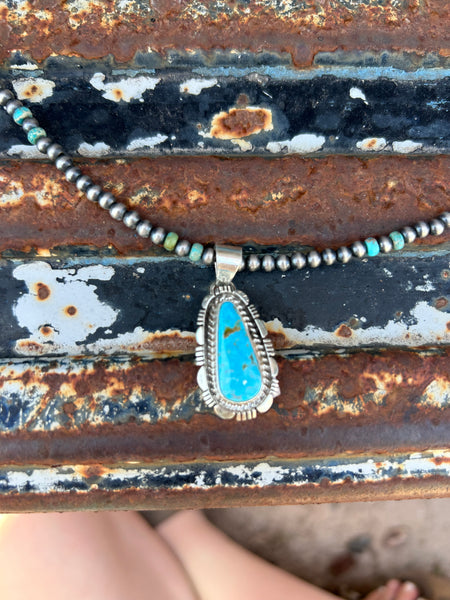 Authentic turquoise pendant pearls sold separately.