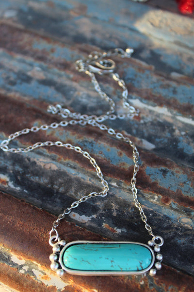 16" Long, Turquoise Necklace. Turquoise on alloy metal, antique silver plate * Nickel, Lead & Chrome free